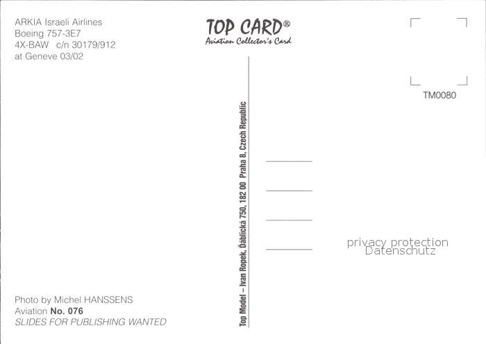 Flugzeuge Zivil Arkia Israeli Airlines Boeing 757-3E7 4X-BAW c/n 30179/912 postalisch nicht gelaufen Erhaltung siehe scans