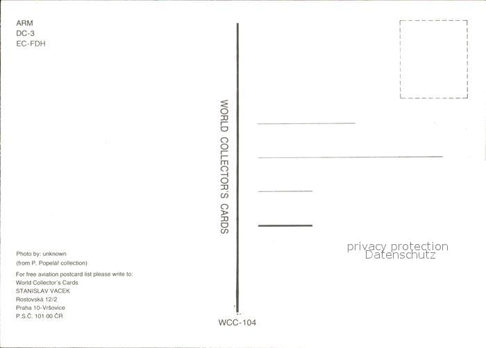 Flugzeuge Zivil ARM DC-3 EC-FDH postalisch nicht gelaufen Erhaltung siehe scans