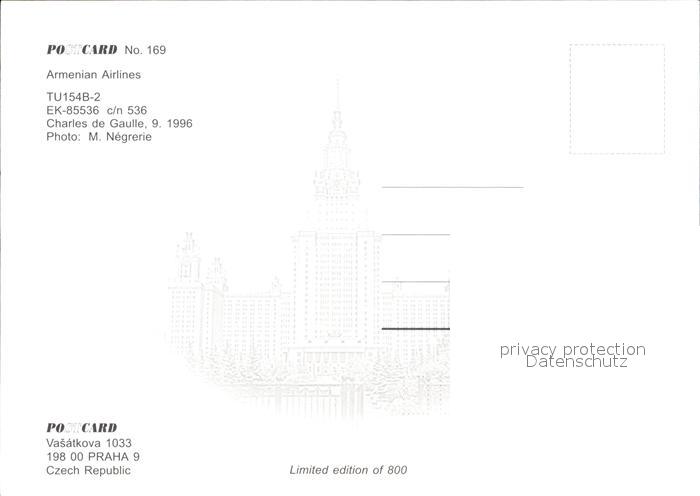 Flugzeuge Zivil Armenian Airlines TU-154B-2 EK-85536 CDG Paris postalisch nicht gelaufen Erhaltung siehe scans