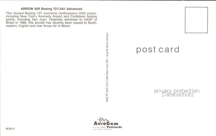 Flugzeuge Zivil Arrow Air Boeing 727-2A1 Advanced postalisch nicht gelaufen Erhaltung siehe scans