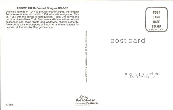 Flugzeuge Zivil Arrow Air McDonnell Douglas DC-8-62 postalisch nicht gelaufen Erhaltung siehe scans