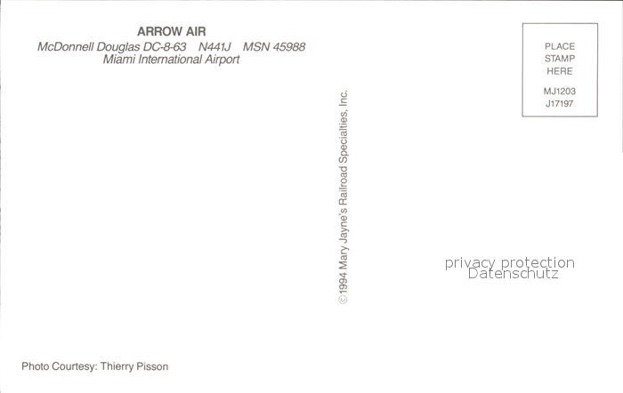 Flugzeuge Zivil Arrow Air McDonnell Douglas DC-8-63 N441J MSN 45988 postalisch nicht gelaufen Erhaltung siehe scans