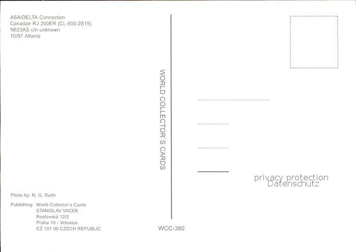 Flugzeuge Zivil Asa Delta Connection Canadair RJ 200ER CL-600-2B19 N823AS postalisch nicht gelaufen Erhaltung siehe scans