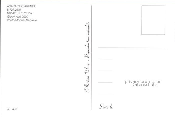 Flugzeuge Zivil Asia Pacific Airlines B-727-212F N86425 c/n 24159 postalisch nicht gelaufen Erhaltung siehe scans
