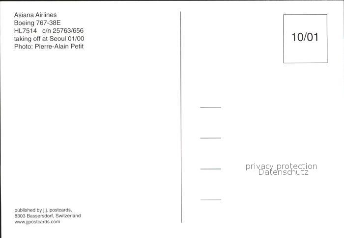Flugzeuge Zivil Asiana Airlines Boeing 767-38E HL7514 c/n 25763/656 postalisch nicht gelaufen Erhaltung siehe scans