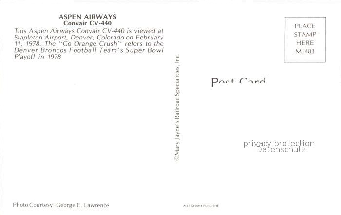 Flugzeuge Zivil Aspen Airways Convair CV-440 GO Orange Crush postalisch nicht gelaufen Erhaltung siehe scans