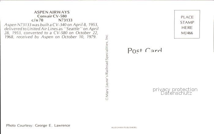 Flugzeuge Zivil Aspen Airways Convair CV-580 N73133 c/n 70 postalisch nicht gelaufen Erhaltung siehe scans