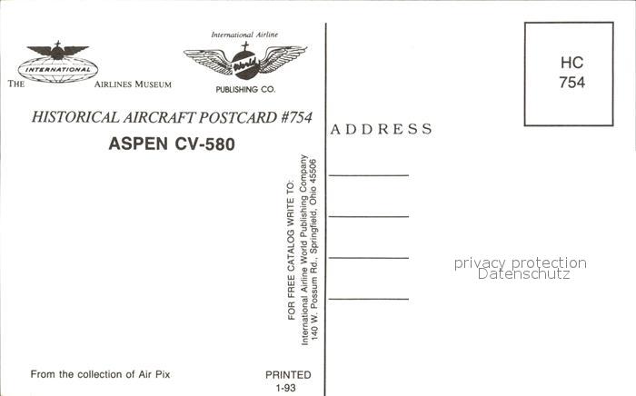 Flugzeuge Zivil Aspen CV-580 postalisch nicht gelaufen Erhaltung siehe scans