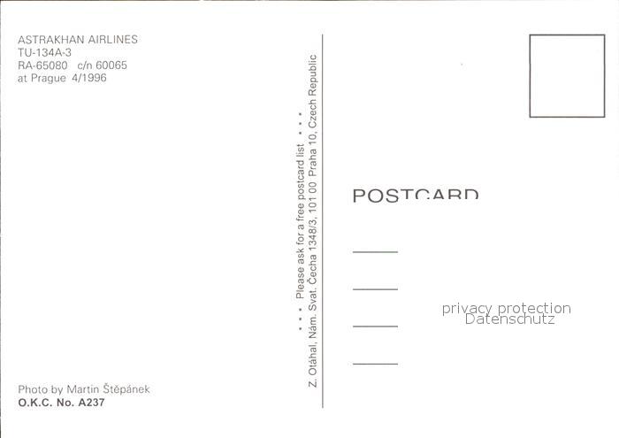 Flugzeuge Zivil Astrakhan Airlines TU-134A-3 RA-65080 c/n 60065 postalisch nicht gelaufen Erhaltung siehe scans