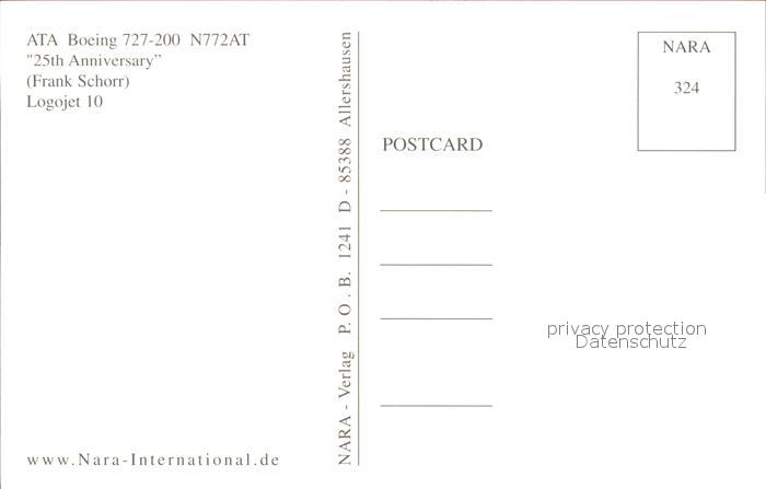 Flugzeuge Zivil ATA Boeing 727-200 N772AT 25th Anniversary postalisch nicht gelaufen Erhaltung siehe scans