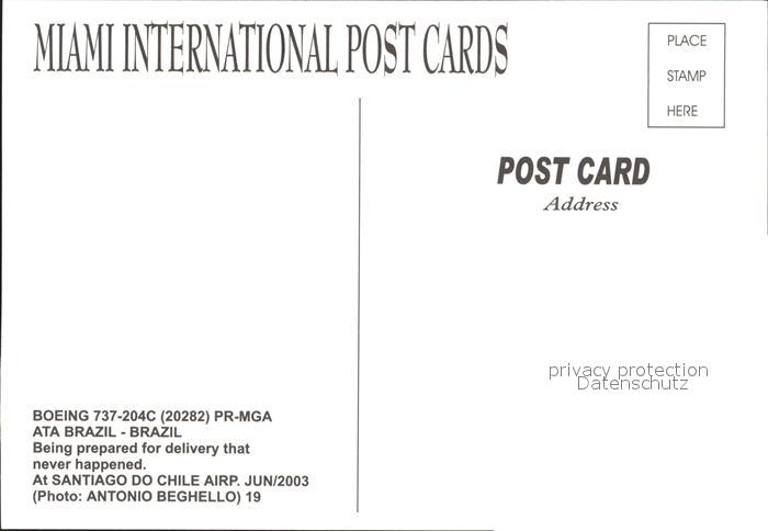 Flugzeuge Zivil ATA Brasil Boeing 737-204C 20282 PR-MGA postalisch nicht gelaufen Erhaltung siehe scans