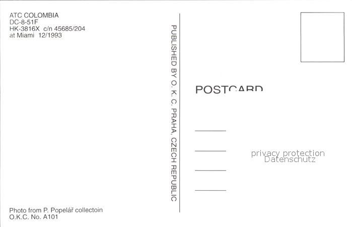 Flugzeuge Zivil ATC Colombia DC-8-51F HK-3816X postalisch nicht gelaufen Erhaltung siehe scans