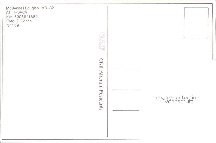 Flugzeuge Zivil Ati McDonnell douglas MD-82 I-DACV c/n 53056/1882 postalisch nicht gelaufen Erhaltung siehe scans