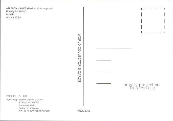 Flugzeuge Zivil Atlanta Hawks Boeing 737-200 N159PL postalisch nicht gelaufen Erhaltung siehe scans