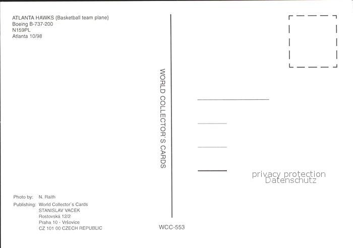Flugzeuge Zivil Atlanta Hawks Boeing B-737-200 N159PL postalisch nicht gelaufen Erhaltung siehe scans