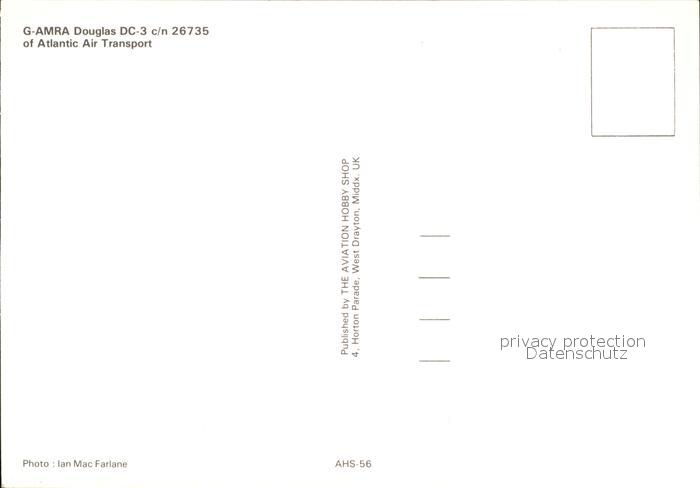 Flugzeuge Zivil Atlantic Air Transport Douglas DC-3 G-AMRA c/n 26735 postalisch nicht gelaufen Erhaltung siehe scans