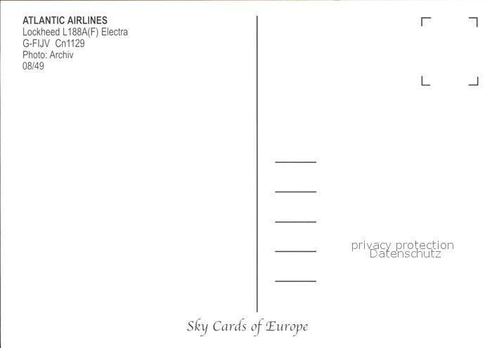 Flugzeuge Zivil Atlantic Airlines Lockheed L188A Electra G-FIJV Cn1129 postalisch nicht gelaufen Erhaltung siehe scans