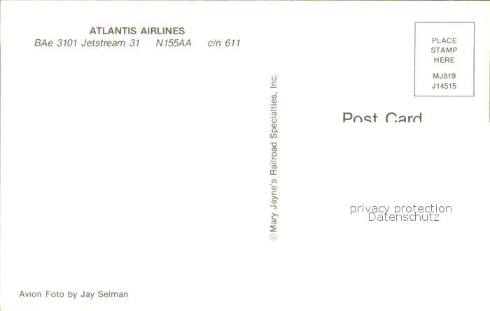Flugzeuge Zivil Atlantis Airlines BAe 3101 Jetstream 31 N155AA c/n 611 postalisch nicht gelaufen Erhaltung siehe scans