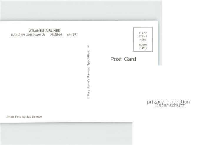 Flugzeuge Zivil Atlantis Airlines BAe 3101 Jetstream 31 N155AA c/n 611 postalisch nicht gelaufen Erhaltung siehe scans