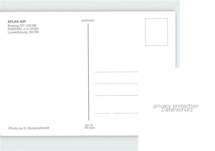 Flugzeuge Zivil Atlas Air Boeing 747-2D3B N505MC c/n 21251 postalisch nicht gelaufen Erhaltung siehe scans