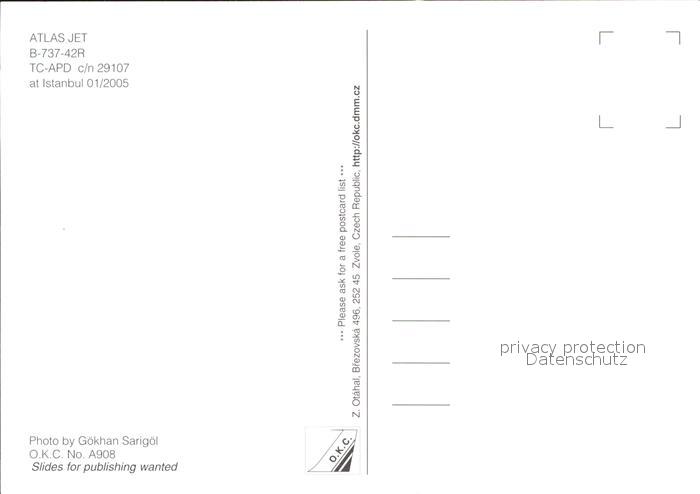 Flugzeuge Zivil Atlas Jet B-737-42R TC-APD c/n 29107 postalisch nicht gelaufen Erhaltung siehe scans
