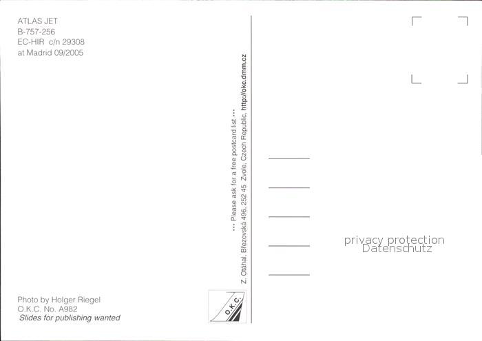 Flugzeuge Zivil Atlas Jet B-757-256 EC-HIR c/n 29308 postalisch nicht gelaufen Erhaltung siehe scans