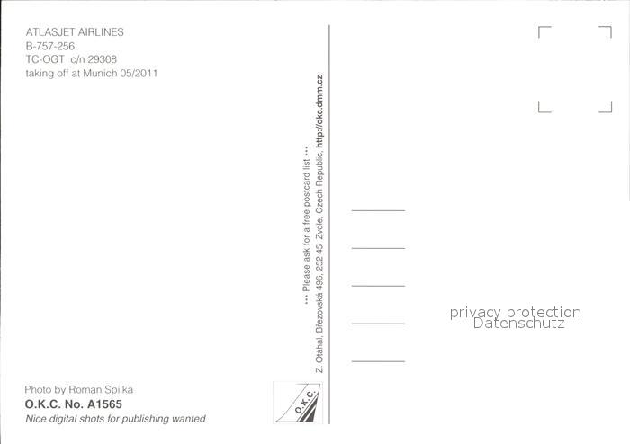 Flugzeuge Zivil Atlasjet Airlines B-757-256 TC-OGT c/n 29308 postalisch nicht gelaufen Erhaltung siehe scans