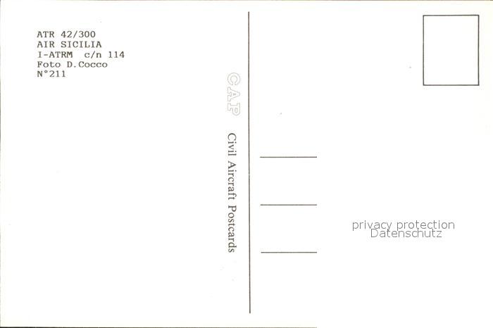 Flugzeuge Zivil atr-42/300 Air Sicilia I-ATRM c/n 114 postalisch nicht gelaufen Erhaltung siehe scans