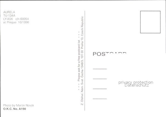 Flugzeuge Zivil Aurela TU-134A LY-ASK c/n 60054 postalisch nicht gelaufen Erhaltung siehe scans