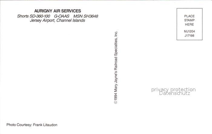 Flugzeuge Zivil Aurigny Air Services Shorts SD-360-100 G-OAAS MSN SH3648 postalisch nicht gelaufen Erhaltung siehe scans