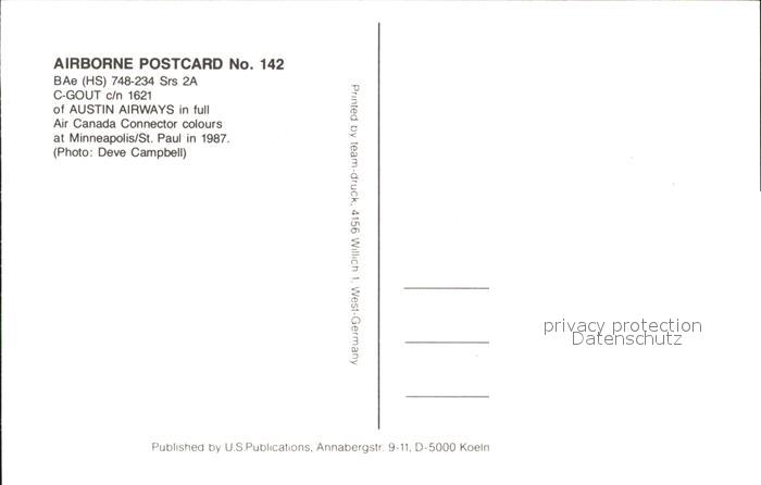 Flugzeuge Zivil Austin Airways BAe HS 748-234 Srs 2A C-GOUT c/n 1621 postalisch nicht gelaufen Erhaltung siehe scans