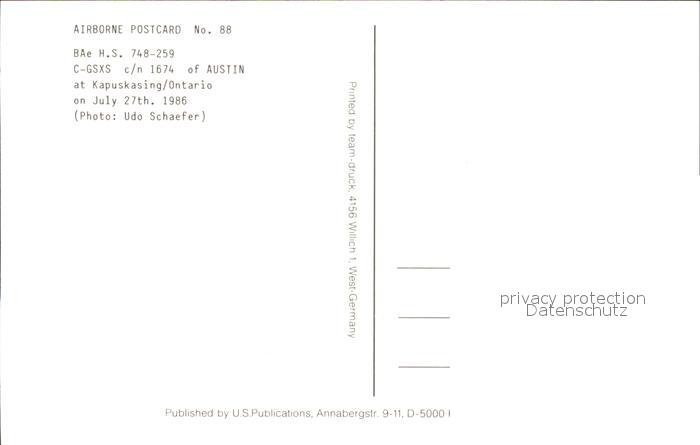 Flugzeuge Zivil Austin BAe H.S. 748-259 C-GSXS c/n 1674 postalisch nicht gelaufen