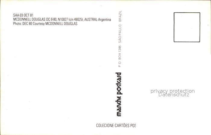 Flugzeuge Zivil Austral Argentina McDonnell Douglas DC-9-80 N10027 c/n 48025 postalisch nicht gelaufen Erhaltung siehe scans