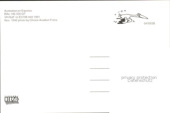 Flugzeuge Zivil Australian Air Express BAe 146-300 QT VH-NJF cn E3198 postalisch nicht gelaufen Erhaltung siehe scans