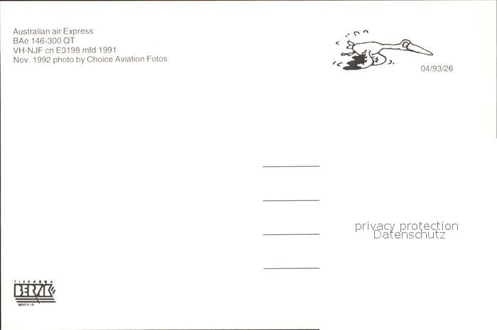 Flugzeuge Zivil Australian Air Express BAe 146-300 QT VH-NJF cn E3198 postalisch nicht gelaufen