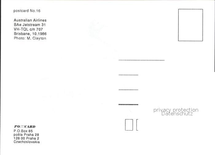 Flugzeuge zivil Australian Airlines BAe Jetstream 31 VH-TQL c/n 707 Brisbane postalisch nicht gelaufen Erhaltung siehe scans