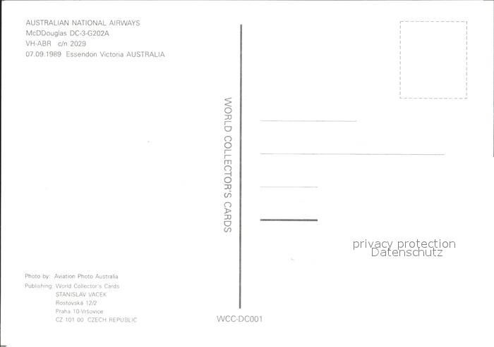 Flugzeuge Zivil Australian National Airways McDdouglas DC-3-G202A VH-ABR c/n2029 postalisch nicht gelaufen Erhaltung siehe scans