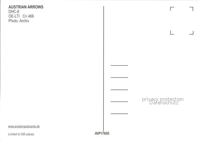 Flugzeuge Zivil Austrian Arrows DHC-8 OE-LTI Cn 466 postalisch nicht gelaufen Erhaltung siehe scans