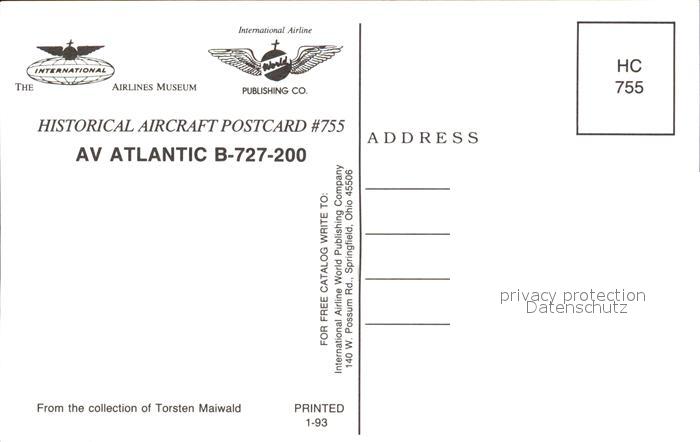 Flugzeuge Zivil AV Atlantic B-727-200 postalisch nicht gelaufen Erhaltung siehe scans