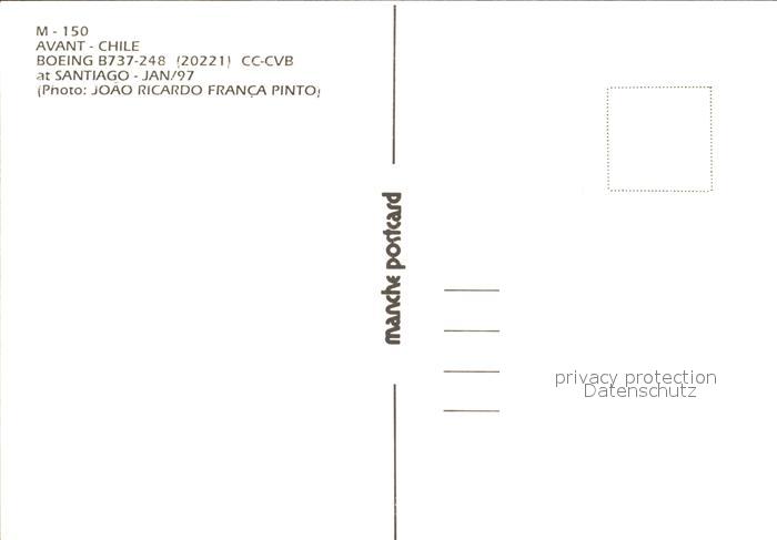 Flugzeuge Zivil Avant Airlines Boeing 737-248 20221 CC-CVB postalisch nicht gelaufen Erhaltung siehe scans