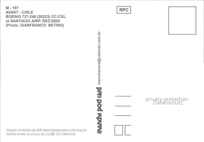 Flugzeuge Zivil Avant Chile Boeing 737-248 20223 CC-CSL postalisch nicht gelaufen Erhaltung siehe scans