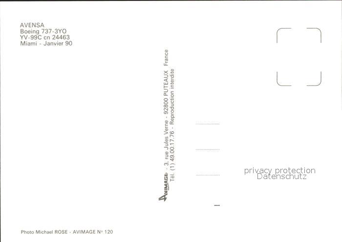 Flugzeuge Zivil Avensa Boeing 737-3YO YV-99C cn 24463 postalisch nicht gelaufen Erhaltung siehe scans