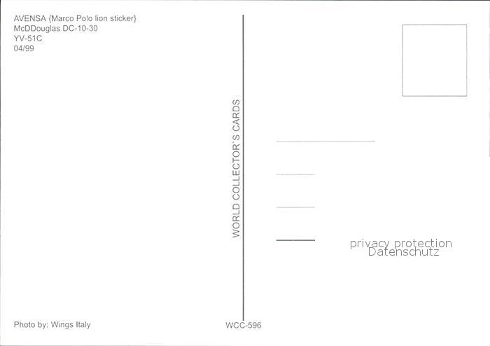 Flugzeuge Zivil AVENSA (Marco Polo lion Sticker) McDDouglas DC-10-30 postalisch nicht gelaufen Erhaltung siehe scans