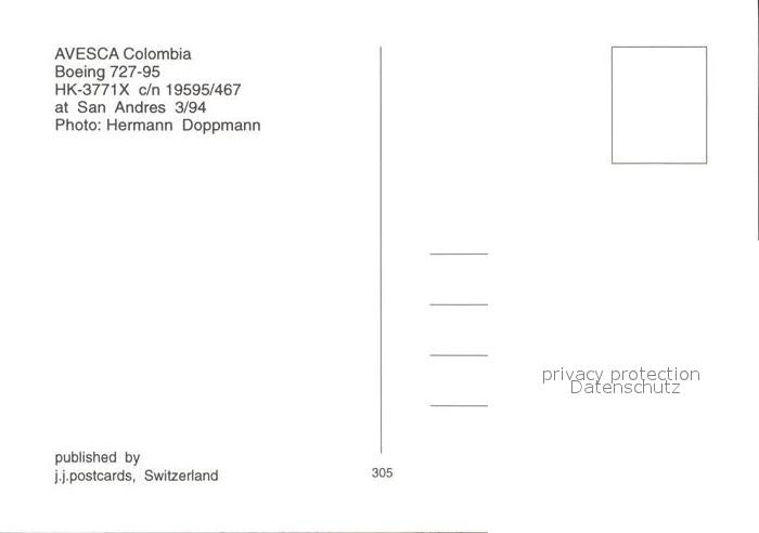 Flugzeuge Zivil Avesca Colombia Boeing 727-95 HK-3771X c/n 19595/467 postalisch nicht gelaufen Erhaltung siehe scans