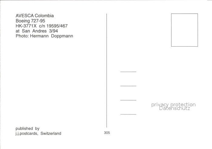 Flugzeuge Zivil Avesca Colombia Boeing 727-95 HK-3771X c/n 19595/467 postalisch nicht gelaufen Erhaltung siehe scans