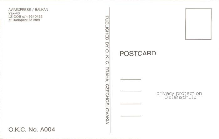 Flugzeuge Zivil Aviaexpress Balkan Yak-40 LZ-DOB c/jn 9340432 postalisch nicht gelaufen Erhaltung siehe scans