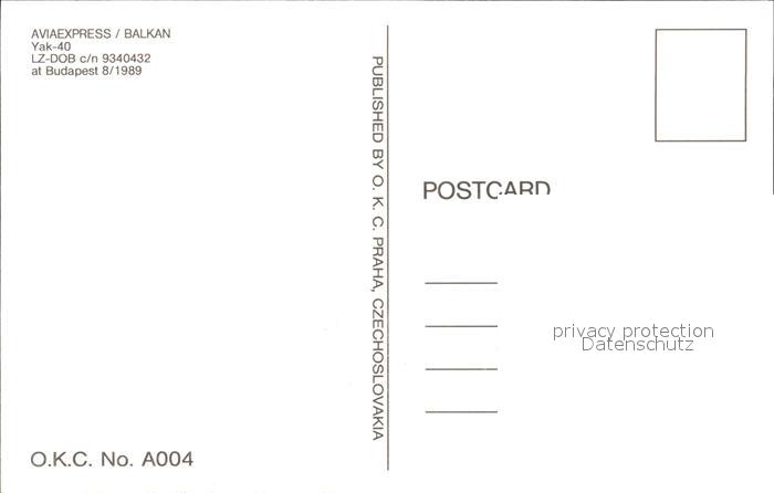 Flugzeuge Zivil Aviaexpress Balkan Yak-40 LZ-DOB c/n 9340432 postalisch nicht gelaufen Erhaltung siehe scans