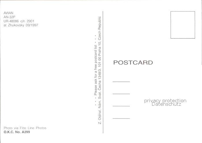 Flugzeuge Zivil Avian AN-32P UR-48086 c/n 2901 postalisch nicht gelaufen Erhaltung siehe scans