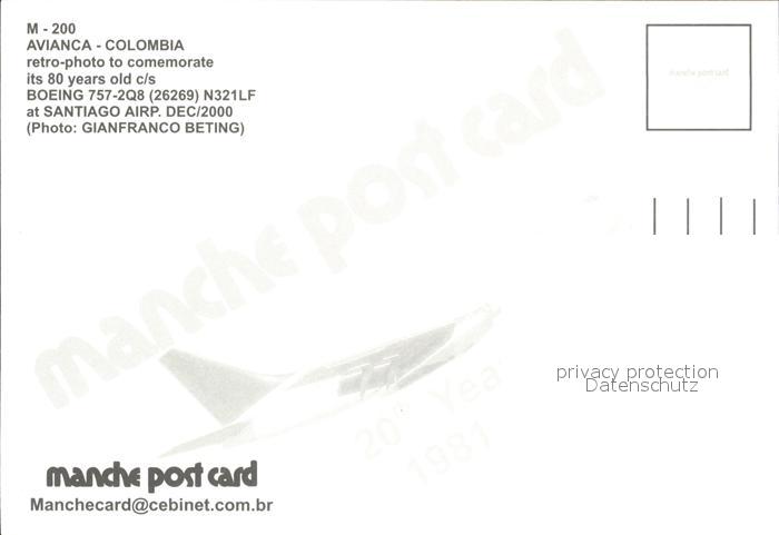 Flugzeuge Zivil Avianca Colombia Boeing 757-2Q8 26269 N321LF postalisch nicht gelaufen Erhaltung siehe scans