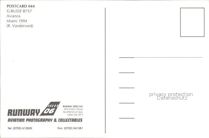 Flugzeuge Zivil Avianca Colombia G-BUDZ B757 postalisch nicht gelaufen Erhaltung siehe scans
